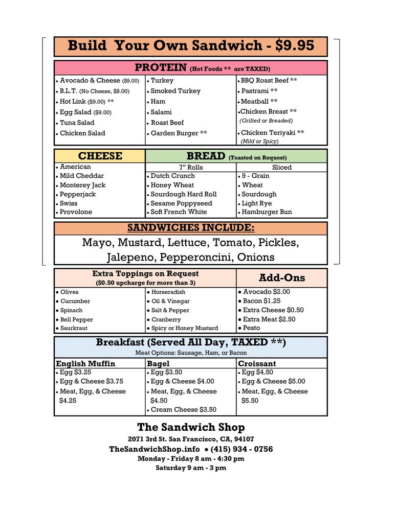 The Sandwich Shop San Francisco Menu (Update 2025)