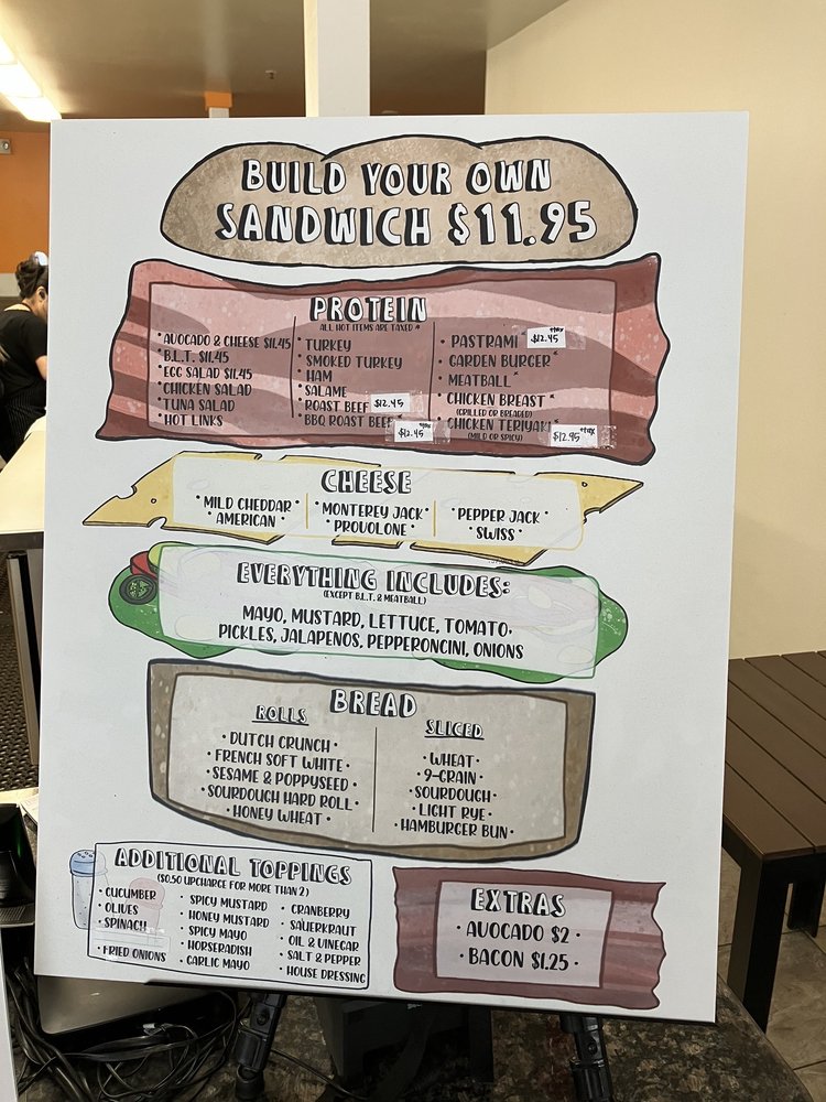 Freshly sliced avocado with 4 slices of your choice of cheese & choice of toppings (everything includes mayo, mustard, lettuce, tomato, pickles, jalapenos, pepperoncinis, onions).